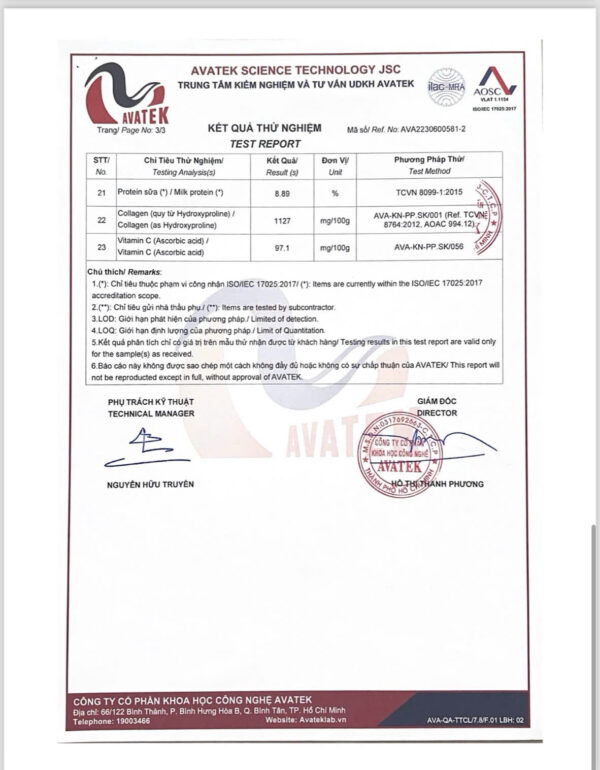 Thành phần: Sữa non lên men Lactobacillus từ lúa Collagen từ lựu Ngũ cốc gồm hạt bí, hạt hạnh nhân, hạt óc chó, hạt đậu hà lan, hạt sachi, thanh long, khoai lang